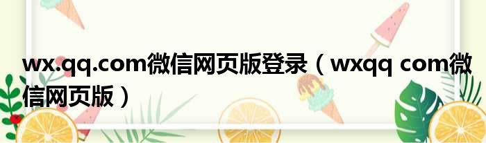 wx.qq.com微信网页版登录(wxqq com微信网页版)