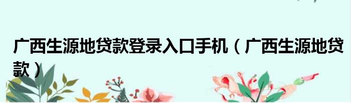 广西生源地贷款登录入口手机(广西生源地贷款)