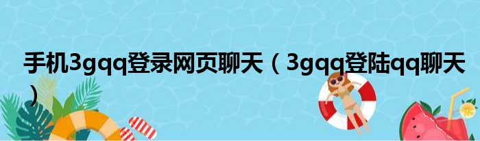 手机3gqq登录网页聊天(3gqq登陆qq聊天)