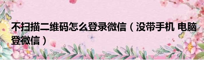 不扫描二维码怎么登录微信(没带手机 电脑登微信)