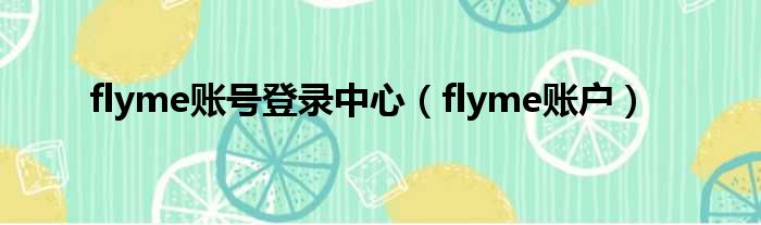 flyme账号登录中心(flyme账户)