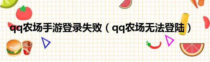 qq农场手游登录失败(qq农场无法登陆)